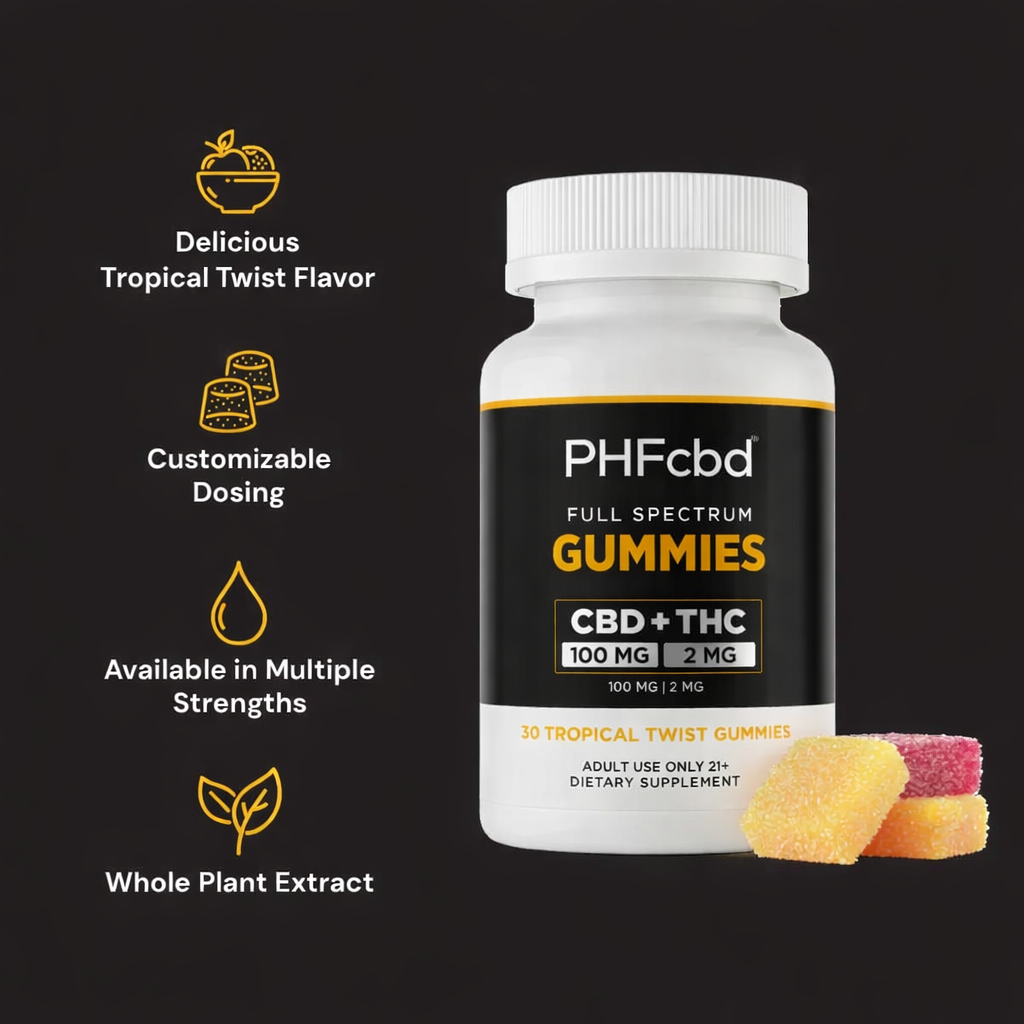 FULL SPECTRUM - TROPICAL TWIST CBD + THC - 30 COUNT - 100 MG CBD : 2 MG THC